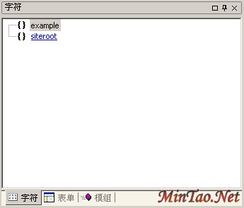 字符是NoahWeb中的重要资源之一,它和表单资源一样也是做页面显示所使用的一种表现形式。字符资源的内容可以是任何文本形式的代码,被封装在ResourceStrings.xml.config文件中,代码中也可以加入JavaScript、数据库操作集等内容,使页面的输出更丰富多彩。