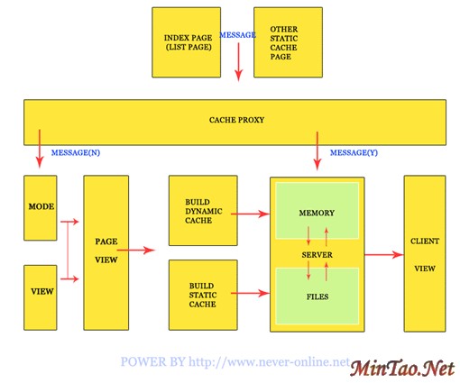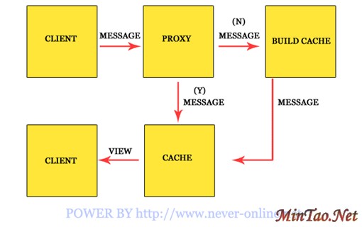 采用动态cache和静态cache的完整示意图,用消息通讯。简单的说明了如何应用cache的布署和应用。当然可以不用Cache Proxy来判断的,去掉cacheproxy也是一样的。