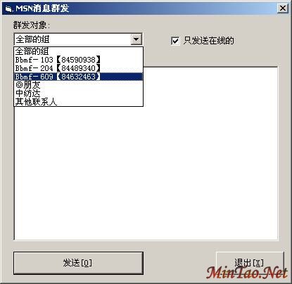 第五步:编译运行。选择“文件”菜单的生成“工程1.exe”菜单项,一个属于你的MSN信息群发软件就完成了。运行这个exe界面如下: