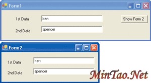 这是一个有趣的问题。我保证某些聪明的编程好手会建议我使用委托。在这种事情发生之前,让我们 先探究一下这个问题的几种解决方案。 假定我有两个窗体,每个窗体都有两个 textbox 控件:txt1stData 和 txt2ndData。我怎样才能保持这两个窗体中的控件同步呢?对于我们讨论的问题来说,有两个或十个窗体都不重要,问题是相同的。 第一个办法相对简单。事实上,它甚至比我们直接使用委托更为简单,我想委托有时会给人用牛刀杀鸡的感觉。首先,我建立一个类它包含我希望与应用程序中的所有窗体共享的属性(参见 Figure 1)。例如,MyData 和 MoreData 拥有每个窗体都能显示的数据。我将很快回到这个类来。 第二,正如我早先提到的我用相同的控件(txt1stData 和 txt2ndData)建立了两个窗体。你可以参考 Figure 2 的布局。两个窗体都有完全相同的数据,并且我将很快解释为什么。