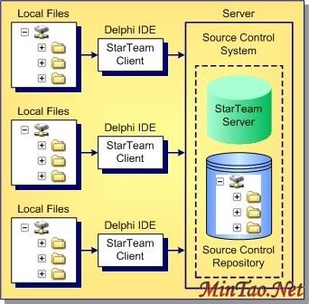 StarTeam consists of server and client components. On the server side, the StarTeam Server maintains a database repository that captures a complete snapshot of the source files in your project and incremental changes (deltas or differences) to those files. The StarTeam client is integrated seamlessly with Delphi 2005. You can place projects into and pull projects out of your source control repository, and check in, check out, merge, and compare files.