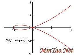 1、将给出图例的椭圆曲线方程Y2Z=X3-XZ2 和Y2Z=X3+XZ2+Z3转换成普通平面直角坐标系上的方程。