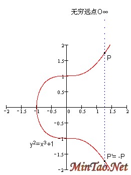 ▲椭圆曲线上有一个无穷远点O∞(0:1:0),因为这个点满足方程[3-1]。