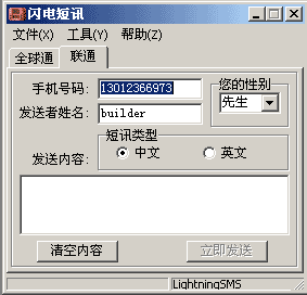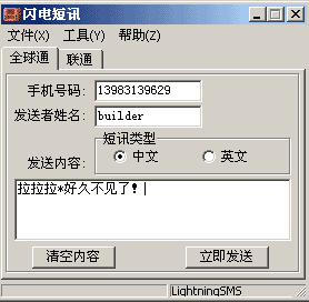 编辑评语: 小巧精致,包括下载回来,给自己发了十条信息,只用了一分钟。非常的实用和方便。也不需要注册。你用了一定会激动不已。唯一的缺点就是没有电话薄记录,每次给不同的人发送都要重新拨号。
