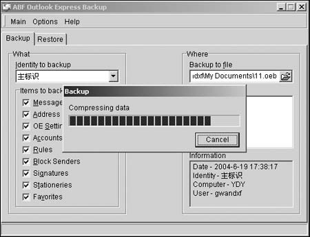 通过查看备份文件的属性,发现该文件容量不小(其中邮件的信息占有相当大的比例),可见该文件的确涵盖了Outlook Express的所有信息。