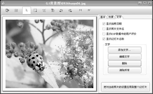 “数码故事2004”是您数码相机的最佳伴侣。将您的数码相片或视频短片通过“数码故事2004”加入文字、背景音乐、特效就可制作成能在VCD上播放的动感影音光盘。下面就请读者随我一起来制作出一个属于自己的VCD吧! 第一步:导入瞬间精彩数码相片 把你拍好的数码相片存储到本地硬盘,然后单击“照片和录像短片”菜单下的“导入视频文件” 按钮,此时弹出一对话框,选择加入到幻灯片里的数码照片。如果想在数码相片中添加字体或效果,可以点击“编辑” 按钮进行编辑,如图所示。 编辑提示:使用Shift键可以一次加一个或多个文件,你也可Ctrl+A全选,每选择一种效果你可以点击“预览效果”进行观赏,选择你满意的。 第二步:导入背景音乐 为达到动感效果,可以给幻灯片添加你喜欢的音乐。单击“背景音乐”按钮下的“导入音频文件” 按钮,选择加到幻灯片里的音频文件,最后选择“自动同步音频和视频”即可。 第三步:为幻灯片选择开始菜单 单击“菜单设计器” 按钮 ,从预设的菜单模板中选择模板,在菜单设置框中,你可以添加文字或图片以及调整模板中的目标对齐,点击菜单中的相关按钮即可进行操作,保存完毕,点击退出按钮。