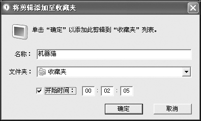 首先暂停播放的电影,点击菜单中的“收藏夹→将剪辑添加至收藏夹”,出现如图所示窗口,勾选“开始时间”,其后的数字就是该电影播放到的当前时间,按“确定”将其添加至收藏夹中。当以后要从上次中断位置接着看时,只需从“收藏夹”菜单中选择收藏的相应项目,即可实现电影的“断点续播”。
