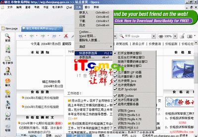 在浏览器市场上,一款源于北欧挪威的Opera(歌剧) 浏览器,从5.0版采用广告显示、免费使用开始,就已经具备了在浏览器市场增得一席之地的基本条件。它以原创内核个头小、速度快、运行稳定、设计合理、实用,操作灵活方便,不必担心病毒和流行的网页木马攻击等优点,号称是世界上浏览速度最快的浏览器。近年来,Opera也随IE和Netscape之后,推出了最新的7.53版,此版本是否意味着这款名叫歌剧的浏览器在功能上也与两大浏览器平起平坐呢,看完下面的介绍,相信您应该能够得出自己的结论。 Opera浏览器小档案 软件版本:V7.53 without JAVA 软件性质:共享软件 软件大小:16MB 汉化软件:7.51 简体中文包 下载地址:http://download.pchome.net/php/dl.php?sid=27 1、 快速设置浏览器参数 在浏览网页的过程中,我们通常会根据网页的实际情况调整某些浏览器的选项,结果自然是需要反复打开浏览器的选项设置窗口。如今在Opera 7.53中,这一切就变得非常方便。只要通过“工具→快速参数选择”菜单项或快捷键F12打开一个子菜单(图1),勾选是否“允许播放GIF动画”、“允许播放嵌入音频”、“启用Cookies”、“启用代理服务器”等;最令人满意的是,还可以点选“打开全部弹出窗口”、“在后台打开弹出窗口”、“拒绝不需要的弹出窗口”、“阻止全部弹出窗口”等菜单项灵活控制弹出窗口。