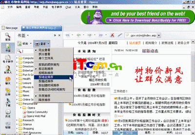 2、功能强大的“书签”快捷栏: 点击左侧快捷栏中的“书签”按钮出现图2界面,此界面太熟悉了,不就是IE的收藏夹吗?再仔细看看,它已不是传统意义上的收藏夹,而是包含书签、电子邮件、联系人、历史、链接、窗口和笔记等分类的收藏夹,在每个大类中还可以根据你的喜好分成许多小类,操作上非常简单,可以新建、添加和删除其中各类链接。