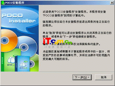安装和下载 首先到比较大的下载网站,查找poco并下载最新的版本,也可以直接到官方下载,下载地址是:http://www.poco.cn/download/poco2004.exe 容量大小是3.43M。点击下载完成的图标 进入了它的安装界面。