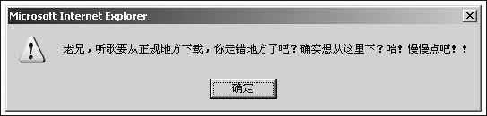 MyIE一共提供了7种启动模式,其中“打开上次访问的网页”备受大家的青睐,因为这样可以继续浏览MyIE最后访问的网页,省去了重新查找、输入网址的麻烦。不过凡事都有利弊,笔者在一次重启MyIE打开多个网页时,突然遭遇恶意代码弹出窗口,该窗口其实来自一个正规音乐网站的下载页面,经分析是由于没有从主页注册登录而被认为是盗链,从而触发了恶意代码,如图1所示。