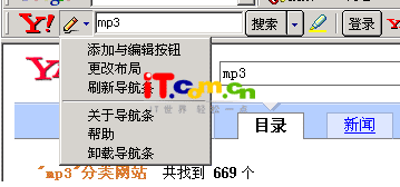 从http://cn.companion.yahoo.com/Yahoo在线安装Yahoo工具条,非常方便。安装好以后,它便会在你的地址栏的下方显示如下一条: