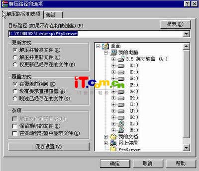 随着这几年宽带网在我国的普及,宽带上网的人越来越多,朋友之间的文件共享与交流成了一个问题,用QQ、ICQ、 MSN等聊天之类的软件传送吧,很不方便,速度也是一个问题,装个Server-U吧,似乎夸张了点。而且说不定给你弄个漏洞出来,危害到你电脑的安全,这就不好了嘛。而这个MINI FTP 正好满足你的要求。很小的个头,很绿色。有需要时打开,不需要的时候关闭,当然也可以选择适当的目录,永久性的共享给你的朋友。把用户名和密码告诉你的朋友,他们就可以随时来下载你分享给他们的东西了。 一、安装FTP服务器 下载此软件地址:http://www.20cn.org/download/Generic/FtpServer.zip ,下载完毕后利用WINRAR压缩软件解压缩,将鼠标右键点击FtpServer.xip,在快捷菜单内选择“解压缩文件”,出现解压缩窗口,如图1,在“解压路径和选项”内可以选择您要解压缩的路径。