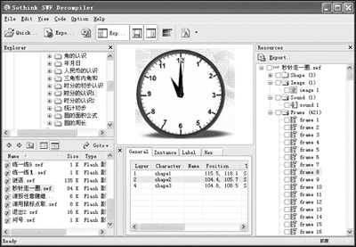 软件名称:Sothink SWF Decompiler 软件版本:MX 2005 编辑推荐:★★★★ 下载地址:http//www.sothink.com.cn/download/swfdec.zip 看着绚丽的Flash动画,你想知道别人是怎么完成这些Flash动画的吗?想过将自己需要的素材从里面提取出来吗?今天我们就来看看号称是业界领先的用于浏览、查看、解析和反编译Flash动画(.swf文件)的工具——硕思闪客精灵。 ◆分解Flash动画 每当我们看见绚丽、设计独特的Flash动画(.swf文件和.exe文件)时,有时候想知道对方的制作方法和流程,或者提取一些需要的素材,如果没有FLA源代码,那就只能望洋兴叹。如图1所示,使用“硕思闪客精灵”打开Flash动画后,“硕思闪客精灵”就会自动将Flash动画中所有的图片、矢量图、变形矢量图、字体、文字、按钮、动画、动画帧和代码等基本元素完全分解出来。同时用户可以方便地将这些元素导出,作为资源用于其他动画制作。例如,图片可以导成.jpeg和.bmp格式;声音可以导成.mp3和.wav格式;还可以将动作脚本(Action Script)代码导成文本文件;每个帧可导出单独的.swf文件。不仅如此,“硕思闪客精灵”还可以对Flash动画中的ActionScript进行反编译得到简洁易读的代码,完全支持Flash MX和ActionScript 2.0。 ◆将SWF文件转换为FLA文件