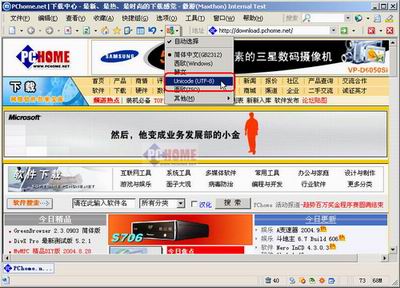 考虑到这点,Maxthon在正式版中的编码方式中,默认添加了Unicode的选项,只要通过功能图标,就可以轻松改变网页的编码方式。