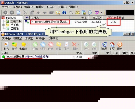 Bitcomet和Flashget下载接力 第一步:首先通过BT搜索引擎把用Flashget没下载完的文件对应的Torrent文件找出来,然后把把该文件添加到Bitcomet的下载列表中并开始进行传输,连接成功,待下载了其中的一小部分,然后点击停止。