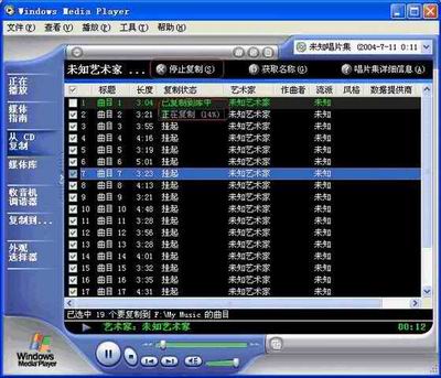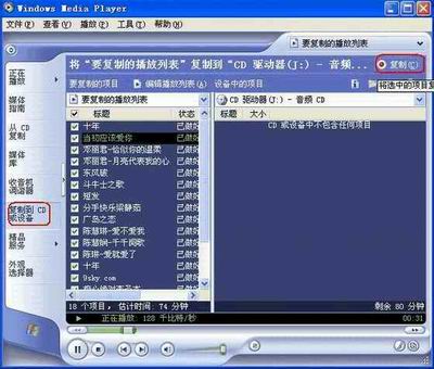 其实WMP同时提供了将MP3转为CD的功能,你只需直接用WMP中的“复制到CD或设备”功能。选择您喜欢的MP3音乐,然后点击下图的“复制”功能即可。(图2)