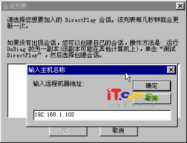 可以通过下面的方法加入会话:在图1中选择“加入现有会话”,单击“确定”按钮,在弹出的窗口中输入要加入会话的IP地址(如图2),确定后在“会话列表”窗口中就会显示局域网中的所有会话名称,单击想进入的会话,点击“加入”,即可进入到“聊天室”中。输入聊天内容,点击“发送”你就可以和局域网中的朋友神侃了。