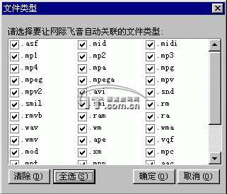 在安装时和其它软件安装方法一样,只需要一直点击下一步,安装完毕后,“网际飞音”会提示您是否用此播放器播放所有音频格式,您可以全部选定“全选”,以后就可以用“网际飞音”播放所有格式的音频文件了。如图1