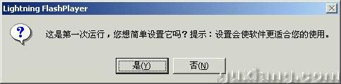 运行程序“闪电flash播放器.exe”后程序会提示你:“这是第一次运行,你想简单设置它吗?提示:设置会使软件更适合您的使用”如图所示
