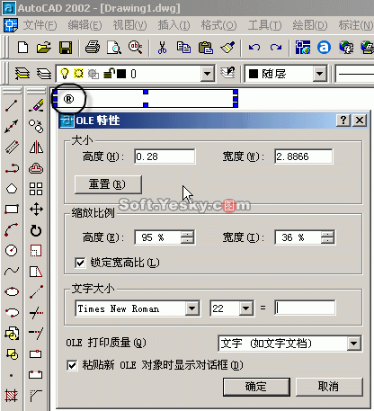 朋友叫我帮忙用Autocad画一个零件的模型,并在图纸底部有相应的文字说明。这些文字中有一些是特殊的字符,如版权符号。 因为Autocad是基于Windows图形界面操作系统的。故我们可利用所见即所用的原则,利用在字处理软件(如Office Word或WPS office)中先输入这些特殊字符,然后再复制并粘贴到Autocad的编辑界面中。 不过这种方法有其弊端,如无法快速的得到指定的大小、位置等。而且由于利用复制粘贴的方法到Autocad中后,Autocad则是将此特殊字符作为OLE对象嵌入其中的,如图1所示。这样也会在无形中增加Autocad图形文件的大小。