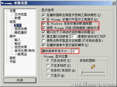 取消"选择"-"显示"分类下的"在Windows任务栏卷动歌曲标题"复选框。同时在主操作窗口的歌曲标题显示处单击鼠标右键,并从弹出的菜单中取消"自动卷动歌名"命令禁止歌曲标题自动卷动。