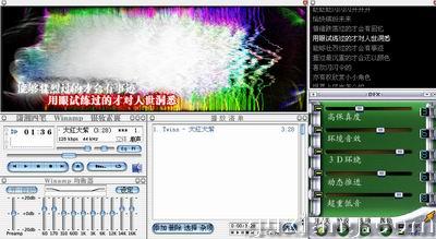 首先到http://www.4bvip.com/article/Soft_Show.asp?SoftID=4将Winamp 2.81 简体中文版下载下来,安装选择类型时选择“全部安装”。 还有就是安装时请不要用默认的盘符安装,否则今后不好找到,从系统上看也是不妥的。可以安装到e(或其它):\Winamp中。其它的按步骤操作就是,我就不多讲了。 B、调出Winamp插件 打开Winamp之后在主界面的左上角有一个按钮,单击它会出现设置菜单(下文称“主菜单”),选择“选项”-“参数设置”。 1、打开并设置“高效视觉演播室” 打开:在弹出的对话框中在左栏选择“视觉效果”,在右栏双击“高效视觉演播室 v2.5.1”,调整调出来的窗口大小、位置,可参照下图调整。 设置:下载“Winamp2.81 AVI自动视频文件”(下载地址:http://www.4bvip.com/article/Soft_Show.asp?SoftID=4),将该文件保存到安装Winamp根目录Plugins\AVI\下。然后在“高效视觉演播室”界面上任意一点点击右键,选择“4BI”即可。 2、打开并设置“DFX” 打开:在弹出的对话框中在左栏选择“音效处理/效果”,在右栏双击“DFX”,调整调出来的窗口位置,可参照下图调整。使用时请保证“开/关”按钮下的图片为绿色。 设置:单击DFX界面上的“选项”-“面板浏览”里选择“DaDj_Green”面板然后调整位置。可将方案设为“耳机”(按钮在下排“帮助”按钮旁边)。五项参数可自行设置,我的设置为: 高保真度-3 环境音效-6 3D环绕-8 动态推进-6 超重低音-8 3、打开并运用“LyricsShow”(歌词秀) 打开:在弹出的对话框中在左栏选择“一般用途”,在右栏双击“LyricsShow! for Winamp……”,调整调出来的窗口位置,可参照下图调整。 设置:与此插件配套的是“歌词力量”这个制作歌词文件的软件,在您安装Winamp的根目录下有这个文件,至于他的使用方法请自行琢磨,我就不多说了。如果你有一个歌词文件(*.lrc),可以在正在播放与该歌词对应的歌曲时,在“LyricsShow"界面上点击右键选择“关联歌词”,找到歌词文件,点击“打开”确定。 要设置歌词显示的颜色,请在“LyricsShow”界面单击右键选择“选项”-“预设”,请不要选择“总是使用与Winamp面板吻合的配色方案”,否则设置的颜色将无效。 C、更改Winamp面板 Winamp可以个性化制作面板,我也在国际五星级面板“银妆素裹”的基础上,将其汉化为中文,请到Soft_Show.asp?SoftID=4下载下来,将其“yzsg2.0.wsz”打开或是保存到安装Winamp的\skin根目录下(记得选择“打开”Winamp会自动保存到skin根目录)。然后在主菜单中选择面板“yzsg2.0”即可。