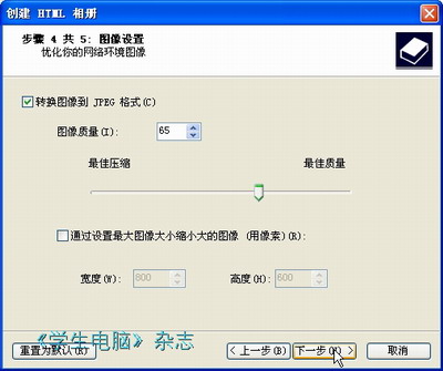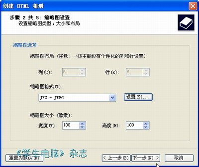 ①缩略图格式选择"JPG-JPEG",这样保证浏览速度快、图片质量好。