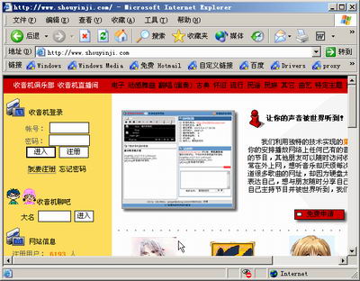 ② 输入 http://www.shouyinji.com回车,登录“收音机.COM”首页。