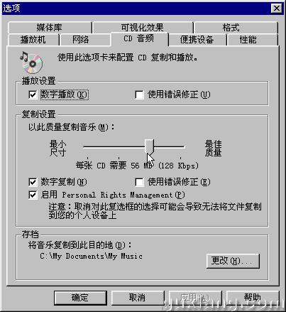 ③ 拖动滑块到128Kbps。这样从CD复制出的音乐品质为128Kbps、WMA音乐了。