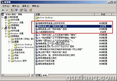 桌面上有很多图标,这些图标有的是操作系统本身所自带的,例如"回收站"、"我的文档"等,还有一些是安装应用软件所建立的启动图标,其它的就是自己手工建立的快捷方式了!对于后两种如果我们要清除它们是一件很容易的事。可能有读者要说,在Windows XP之中我可以直接将它们选中然后删除,但这只是针对部分系统图标,你可以试试删除"回收站",怎么样没有办法了吧!更何况即使对于"我的文档"这样的图标删除,我们也可以在桌面属性的"自定义桌面"中将其添加进来!而如果我们借助组策略这些问题就没有了!