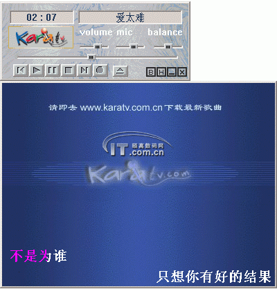 [本站原创]想练练嗓子吗?不要钱的!不信,网上就有,去"卡拉网"(http://www.karatv.com.cn)就可以免费让你过把歌瘾。"卡拉网"据称的中国第一个合法的卡拉OK网站,你的电脑只要可以上网,而且还有个话筒就可以进行你的"卡拉OK网上行"。
