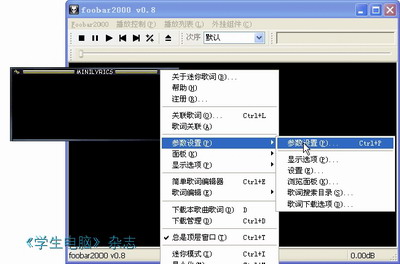 ① 启动Foobar,MiniLyrics也随Foobar一起启动。