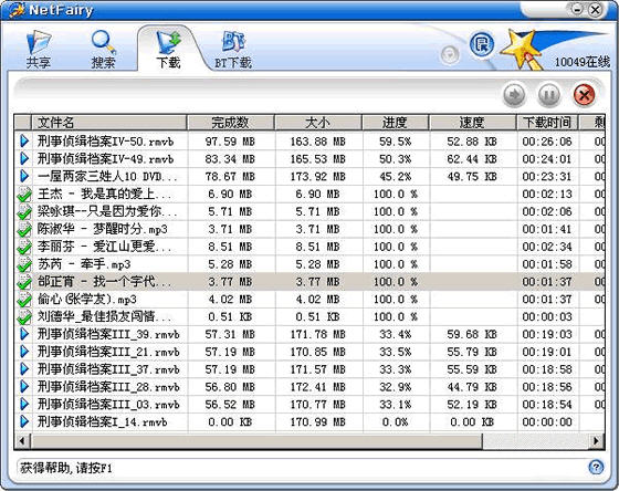 使用P2P下载的朋友都知道,进行文件共享和交换前都要先注册一个账号,并用该账号登录后才能使用。现在,网易公司推出了一个无须注册便可使用的P2P软件《网络精灵》(NetFairy),它自带搜索引擎,能穿越网络防火墙,传输文件时可用TCP/UDP两种协议,而且不用安装其它软件就可以进行BT下载。