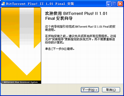 图1是Bit Torrent Plus! 2的安装界面,只要按照向导的提示,一步步操作下去,就可以很快完成安装任务了。
