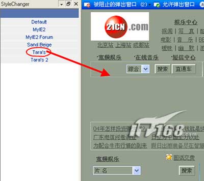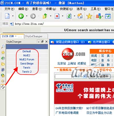 启动Maxthon后,打啾吖ぞ呃阜⑾止ぞ呃干弦丫黾恿薙tyleChange插件,该插件预制了几种网页效果样式。