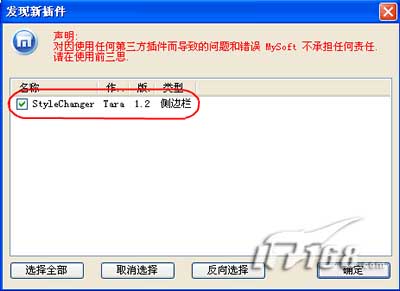 然后再启动Maxthon,这时会提示找到一个新的插件,选择这个插件“确定”即可。
