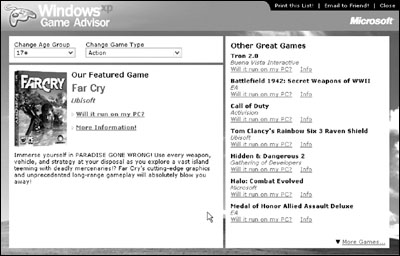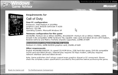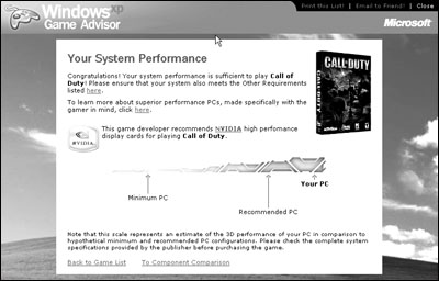 市场上虽然有不少游戏测试软件,但由于每个游戏对电脑硬件的要求都不同,经验不足的用户往往不懂得如何利用这些软件来检测自己电脑的性能,再从测试数据中分析电脑运行游戏时的表现。正因为电脑游戏在高性能电脑市场所扮演的角色越来越重要,为此,微软公司除了提高Windows XP对电脑游戏的支持度外,最近推出了一项新服务——Windows Game Advisor(Windows游戏顾问,以下简称WGA),其目的就是为所有Windows XP用户提供游戏建议,让用户在购买游戏前了解自己的电脑能否胜任游戏。