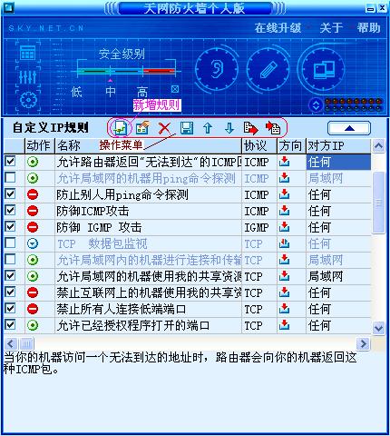 下面是IP规则,一般默认就可以了,其实在未经过修改的自定义IP规则是与默认中级的规则一样的。但如果你想新建新的IP规则也是可以的,因为我们再介绍,这里是默认情况就不多说了。 图二
