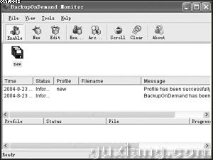 Caddais BackupOnDemand就尤如实时监控的“摄像头”,能够“看”到哪些重要文档发生变化,并且立即备份已修改的文档。有了这个虚拟监视器,就能够帮助我们减轻手动备份的繁琐。即使一时失手覆盖或删除了重要文档,也可以在程序自动备份的文档库中恢复。 [点击下载] 我们安装Caddais BackupOnDemand程序后,必须重新启动计算机。之后,程序将随系统运行。当首次运行时,Caddais BackupOnDemand将极耗系统资源,一段时间内甚至有可能出现系统假死的情况。此时,不需要进程关闭该程序进程或重启Windows,稍候即可恢复。 首先,我们来创造备份任务。点击菜单栏“File→New”,将弹出“New Monitor Wizard”向导窗口。第一步,为任务命名。第二步,选择备份的方式,程序预置了四种不同的方式。如果选择“Real Time Backup”,将实时监视,这样当文档发生变化时将第一时间进行备份;如果选择“Periodic Backup”,将按照指定的时间间隔(分钟或小时)进行备份,如果选择“Scheduled Backup”,将按照预定的周期(每日、每周或每月)进行备份;如果选择“Manual Backup”,则只有通过手动执行相应的程序命令才能备份。在本例中,我们选择第一种方式。第三步,选择欲监控的对象位置并设置是否包括子目录。此外,还可按需指定仅希望备份的文件类型(如.ini配置文件之类)或不备份的文件类型。下面,再设置自动备份每个文档的数量,程序支持不少于999个存档版本。第四步,选择存储备份文件的路径及是否压缩存档,建议选择该项,以避免大量的备份文件可能会导致硬盘空间不足的现象。第五步,开始备份。 之后,我们在Caddais BackupOnDemand程序主界面中,将看到中部的视图中显示了适才所创建的备份任务(如图1)。选定后点击工具栏上的“Enable”按钮激活操作。此外,我们点击菜单栏上的“Tools→Activity View Settings”,在弹出对话框中可设置是否激活日志记录,日志文件的存储目录,以及在几天后自动删除日志文件,并可指定错误及警告信息的颜色。