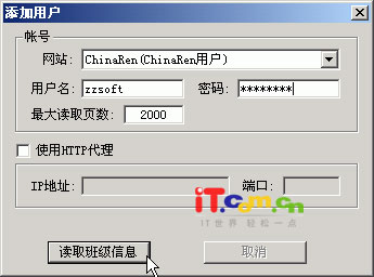 进入主界面后,你就会看到你加入的班级都已经列出来了,现在就要读取数据了。鼠标右键点击一个班级,然后选择“读取—〉全部”,软件会下载校友录上所有的留言,图片和班级成员名单。(图2)这里需要等待一段时间,如果班级里面的留言和图片比较多的话,等待的时间会常一些。