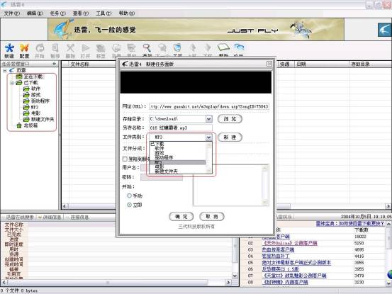 第二:对于一些老玩家来说,可以选择将下载文件存储到其它文件夹中。只需点击“浏览”选定要存放文件的路径就OK了。 迅雷4会默认存储位置,不论是用户或迅雷自定义的存放目录,都会在“存储目录”的位置保存,再有文件要存至相同目录,只需点击“存储目录”边上的下拉箭头,就可以选择相应的文件夹保存。