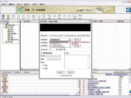 迅雷在线搜索、迅雷娱乐: 迅雷的在线搜索功能,可以搜索一些其它的游戏,在地址栏输入游戏的名字,点击“迅雷搜索”会弹出下载页面,提供了该游戏的下载客户端等。 迅雷娱乐中可以在线搜索MP3,网络游戏栏可以看到最新的网络游戏的试玩讯息,影视和小游戏栏目即将开放,好好期待哦。 下载速度: 这个是大家最关心的问题了。以前相信大家也看过一些关于迅雷软件和其它下载工具比较的文章。迅雷点对点和多媒体搜索技术的智能下载。不仅能将用户指定的下载链接保存到动态数据库中,同时还会结合多媒体搜索引擎去寻找这个文件的多个网络镜像,从而实现多服务器的下载。 迅雷下载使用起来非常简单,我对迅雷的认识就是简单、容易、快。操作简单、容易上手、下载速度快。即使你是菜鸟也会很快掌握的。说了这么多,是不是想亲身体验下迅雷4.0带来的新感觉呢,那还等什么,快去下载来感受吧!