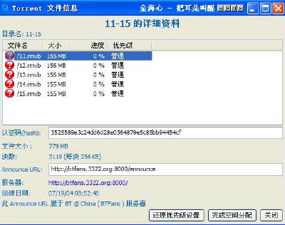 BT 选择性下载的方法 在我们下载 电影 电视剧和综艺节目时,如果碰到了不想下载的东西时,怎麽办呢?那就是我们可以利用软件的选择性下载的功能!下面我就介绍几款BT软件的选择性下载的设置方法: 1.BTtorrent plus II 这个方法比较简单,当你遇到不想下载的东西时,你右键点击BT的属性--文本信息--这时你可以看到一系列下载任务,右键点击想下载的任务,选择高优先级,右键点击你不想下载的任务,选择低优先级,之后再点击:"完成空间分配",这样你就可以进行有选择性的下载了! 设置界面如图:
