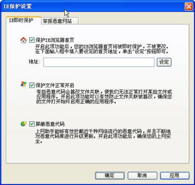 (3)IE保护设置。上网助手对于IE首页、文件关联等提供了特殊的保护功能。