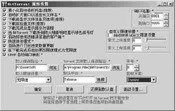 其他的高级选项直接取默认值好了。对各项设置完成后,点击“确定”关闭软件设置窗口。现在“万事俱备,只欠东风”,接下来,按下面的办法可以搞定BT下载。