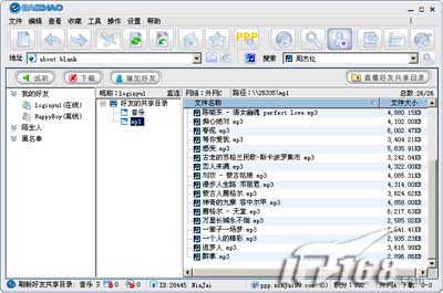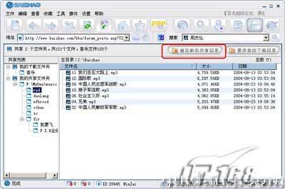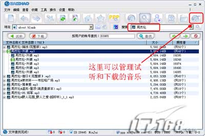 当然我们的主要目的在于获取好友共享出来的音乐,选中好友昵称,你就能看到对方共享的目录和文件,我们可以对这些音乐文件进行在线试听、下载等操作,操作方法大家一用便知。