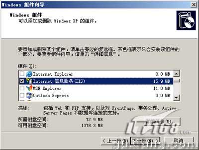 第一步:如果你的机器中没有安装IIS,那么先打开“控制面板→添加/删除程序”,点击“添加/删除 Windows 组件”,在打开的安装向导中勾选“Internet 信息服务(IIS)”一项。如果你不是使用Windows XP/2000,或者不能直接通过控制面板安装IIS,可以到http://www.baizhao.com/download/iis5.rar下载直接安装。