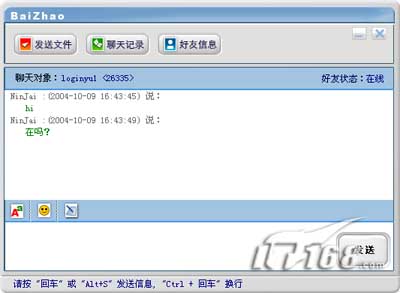 待对方验证通过后你就将其添加为好友了,切换到“好友聊天,共享好友文件”按钮,双击好友的昵称就可以打开聊天窗口,在这里你可以和网友进行简单的文字交流。