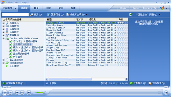 Windows Media Player 10 使用简便,可以查找、下载、组织并播放从音乐到视频、图片以及录制电视范围的数字媒体。